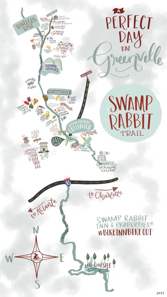 🚲 BIKE - Discover the area like a local by bicycle. Pedal at your own pace, exploring scenic routes and hidden gems. Two complimentary moutain bikes are provided. If you want to rent more you can do so at the Swamp Rabbit Cafe'. 🚖TAXI/UBER - around $10 to go downtown 🚍 BUS - The bus system is not up to par quite yet and we recommend using a car. However, if you wish to use our transit system, the closest bus stop is within walking distance from the house on Wade Hampton Boulevard.