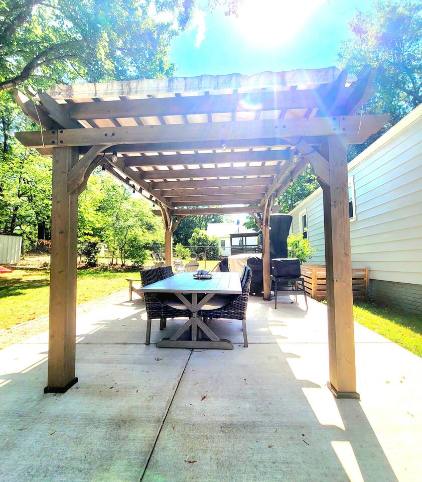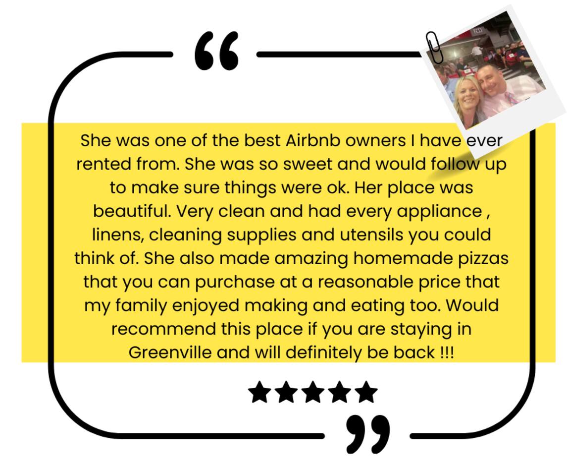 ◍ 2.5 mi to DT Greenville•Swamp Rabbit•Furman•TR• Paris Mtn ◍ 3.8 mi to Lake Placid (pedal boats) ◍ 0.5 mi to shopping mall•grocery ◍ Fenced yard•Fire pit•Disc golf•Cornhole ◍ Patio•Pergola•Pizza oven•Blackstone grill ◍ Mtn bikes•State park pass ◍ YouTube TV•NBA League Pass•Disney+•Hulu•ESPN•Paramount+ ◍ Bread|pasta maker•Nespresso•Keurig•Snow cone•KitchenAid ◍ King bed•Blackout curtains ◍ Fitness gear: tennis•pickleball•weights•bands•weights•yoga mat|brick ◍ EV charger: NEMA 14-50