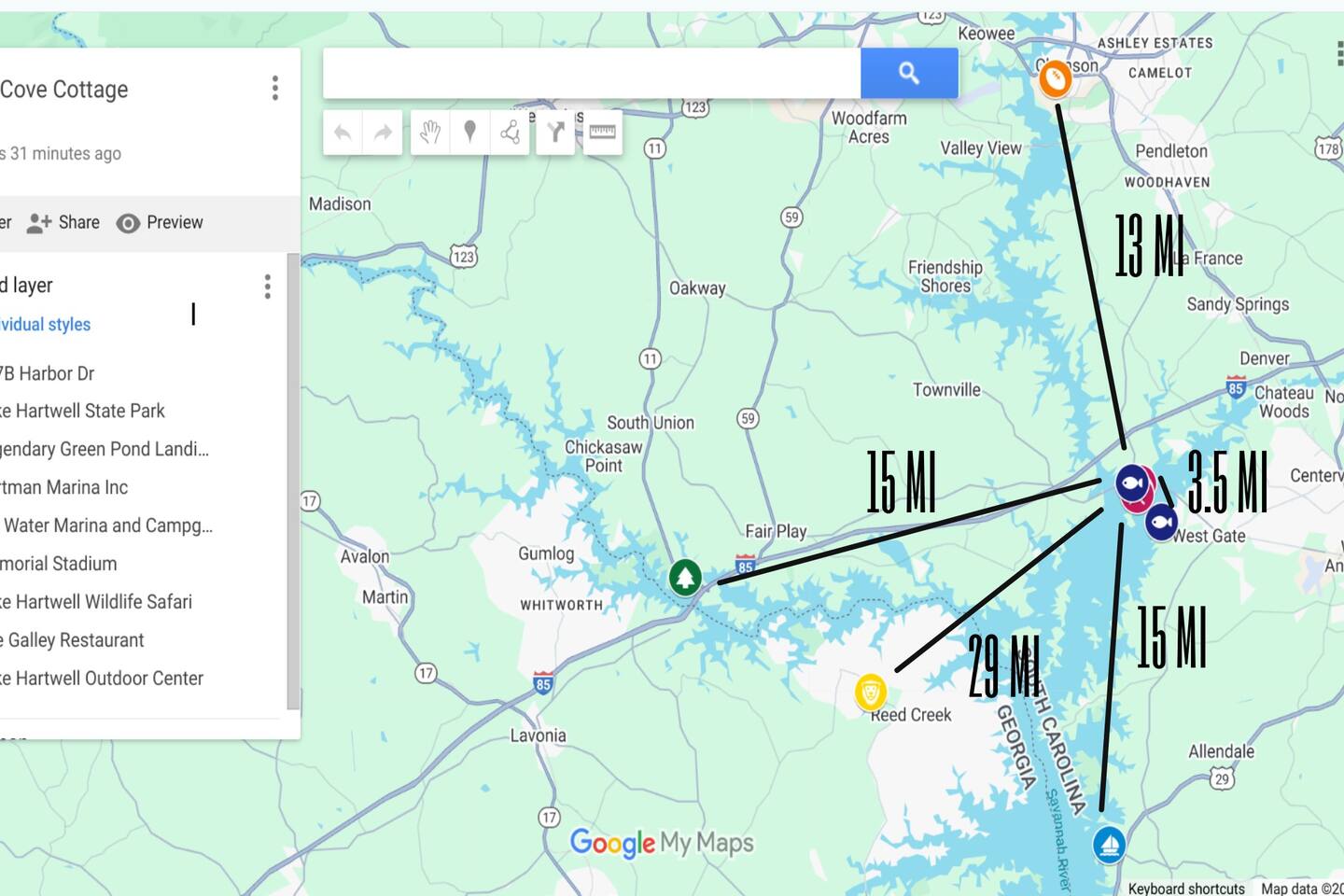 Welcome to The Shoals! Discover the charm of our quiet and friendly marina neighborhood. We absolutely love our lakeside location! You'll enjoy being just a short stroll from the renowned Portman Shoals Marina, home to the top-notch Galley and Nami restaurants. Explore the Area: Big Water Marina (J R Cash's): Just a 19-minute drive. The Local Pub and Eatery: Only 14 minutes away for a casual bite. Clemson University & More: A quick 20-minute drive to Clemson! THE GREAT OUTDOORS Await: Portman Marina (0.3 Mi) Broyles Recreation Area (2.7 Mi) Green Pond Landing and Event Center (3.7 Mi) Apple Island Boat Ramp (3.6 Mi) Sadlers Creek State Park (12 Mi) Lake Hartwell State Park (14 Mi) Issaqueena Falls (34 Mi) Reedy River Falls (35 Mi) HIT THE TRAILS: Butch Kennedy Trail Head (10 Mi) SWU Bike Trails (16 Mi) Waldrop Stone Falls (17 Mi) Issaqueena Trailhead (17 Mi) Swamp Rabbit Trail (35 Mi) DISCOVER CLEMSON (14 Mi): Explore the beautiful South Carolina Botanical Garden, Clemson University's vibrant campus, the iconic Memorial Stadium, Littlejohn Coliseum, the fascinating Bob Campbell Geology Museum, and enjoy a round at The Walker Course. VENTURE TO GREENVILLE (35 Mi): Experience the award-winning downtown and restaurants of Greenville, stroll or bike the scenic Swamp Rabbit Trail, visit the Greenville Zoo, relax at Unity Park, explore Furman University and catch an event at Timmons Arena. GETTING HERE: Greenville-Spartanburg International Airport (GSP) is conveniently located 45 Mi away. Atlanta Hartsfield-Jackson International Airport (ATL) is 123 Mi away Charlotte Douglas International Airport (CLT) is 127 Mi away