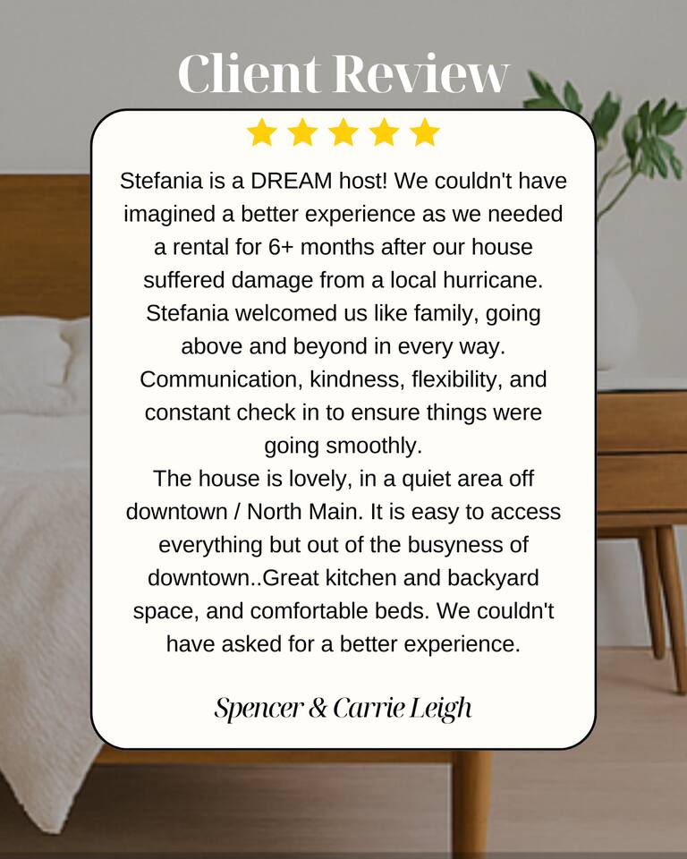 Welcome to Laurel Hare brought to you by Blue Ridge Upstate Gateways! ❤️ Save this listing to your wishlist by clicking so you don’t lose it! Why Families Love It Here 🎯 Prime Location: Located in the sought-after North Main Residential Area, we’re centrally located to everything you need. You'll be just minutes from downtown Greenville's Main Street, the Swamp Rabbit Trail, and top local universities like Furman University and Bob Jones University. The house is also zoned for some of the best schools in the Upstate and is within walking distance to them. 🎯 Move-In Ready for Kids: Travel light! We’ve got all the essentials for your little ones so you don't have to pack them. We provide a crib, pack & play, baby monitor, sound machine, high chair, and even kid-friendly dinnerware and sippy cups. 🎯 Chef's Dream Kitchen: The state-of-the-art kitchen is perfect for family meals. It's fully equipped with everything you need, from a regular coffee maker to a Nespresso and a bread maker. Enjoy making memories with an outdoor pizza oven and a variety of tools for your culinary adventures. 🎯 Pet-Friendly Welcome: We don't just allow dogs—we welcome them! Bring your furry family members along and enjoy our fully fenced backyard. We provide bowls, a bed, a crate, and even Wag! Premium access for all your pet care needs. 🎯 For the Working Family: We know life doesn't stop. With complimentary fast Wi-Fi and a quiet, comfortable space, you can easily handle work or school from the house. Central Location 📍 North Main St: 1.4 mi 📍 Bon Secours Wellness Arena: 2.4 mi 📍 Peace Center: 3.1 mi 📍 Bob Jones University: 0.9 mi 📍 Furman University: 6.8 mi 📍 Prisma Health Greenville Memorial: 5.6 mi 📍 Travelers Rest: 10 mi 📍 Clemson University: 32 mi Special Offers & Important Information 🔥 Flexible Stays: This is a 30-day minimum stay property, perfect for displaced families or those on a temporary relocation. We work directly with insurance companies and relocation specialists to make your transition seamless. 🔥 Longer Stay Discounts: We offer special rates for extended stays of 3, 6, 9, or 12 months. Please send us an inquiry for more details. 🔥 Delta SkyMiles: We are a Delta SkyMiles partner! Use your SkyMiles number at deltaairbnb[dot]com to earn miles on your stay. 🔥 Complimentary State Park Pass: Explore the beautiful Upstate with our free state park pass, giving you access to breathtaking hikes and waterfalls. 💲 Different rates available for 1, 3, 6, 9, or 12-month stays. 🏡 Perfect For: ◍ Families relocating to Greenville for work or school ◍ Homeowners needing temporary housing during insurance claims or renovations ◍ Parents visiting students at local schools/universities ◍ Traveling professionals on extended assignments 📩 Message us today to find the option that works best for your family.